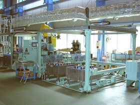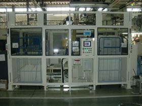 エンジン内部にオイルを噴射する部品を組立てる設備です。